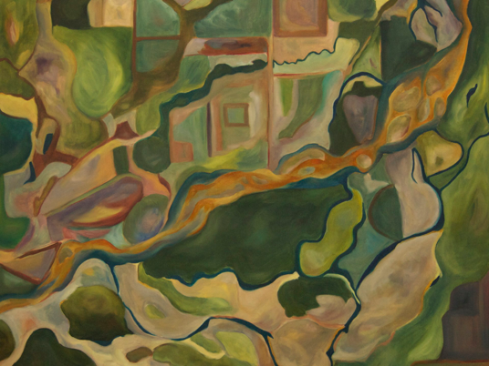 This area has special significance to me. Friends of ours have a cabin just south of where the painting is from, and we’ve been visiting the area for many years. In this painting, we can see where the old riverbed was. Just a few years ago there was a major flood and the river completely changed its course, cutting a swath between a farmer’s house and his barn and moving the river about a kilometre north of where it was before. It has been a testament to the power of nature and how environmental change is normal, and to be expected. The river has flooded and it will again, maybe in my lifetime, and maybe later, after I am gone.